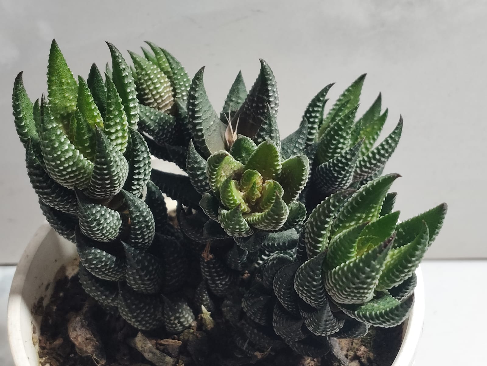 Haworthia reinwardtii, also known as the Reinwardt’s Haworthia, is an attractive column-forming succulent with dark green, elongated leaves marked by neat rows of raised white tubercles. Its unique tower-like growth habit makes it a standout in succulent collections. This hardy plant thrives on minimal care, requires bright indirect light, and is extremely drought-tolerant. Virtues: Easy-care, architectural look, ideal for indoor décor, fast offsetting. Mostly Found In: South Africa. Scientific Name: Haworthiopsis reinwardtii