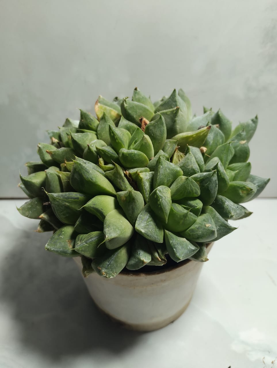Haworthia cooperi var. truncata (Cluster Form), commonly known as a Window Haworthia, is a compact, clumping succulent recognized for its dense rosettes of plump, translucent-tipped leaves that help it tolerate strong light. Native to the semi-arid regions of South Africa, it is loved for its drought resistance, low-maintenance nature, and ornamental glass-like foliage that makes it ideal for indoor displays and succulent arrangements.